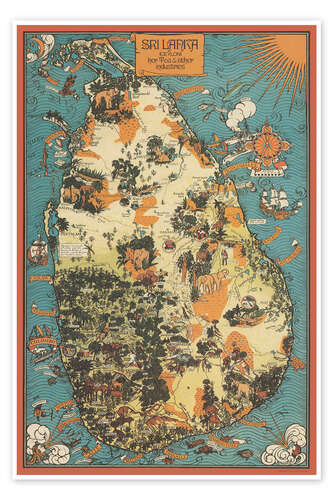 Posterlounge   Wall art   Maps   World maps   Vintage Educational Collection   Poster Sri Lanka (Ceylon) Tea & Other Industries