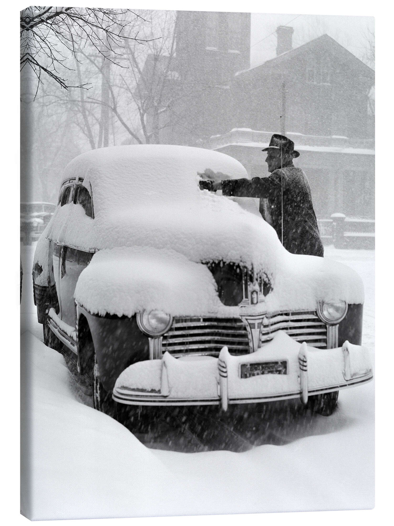 Posterlounge   Wall art   Photography   Nostalgia   Canvas print 1940s vintage car after a snowfall