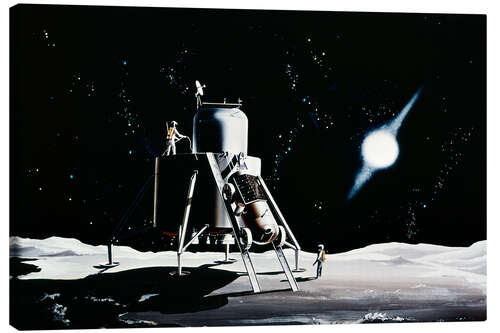 Posterlounge   Wall art   Black and white   Canvas print Illustration of lunar lander and astronauts